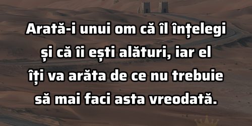 martie 3, 2026 Arată-i unui om că îl înțelegi și că îi ești alături, iar el îți va arăta de ce nu trebuie să mai faci asta vreodată. Categories Citate 📜 Comments: 0
