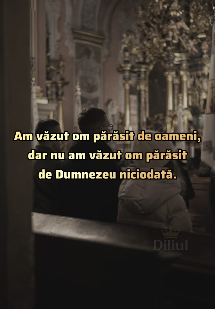 Home > Citate 📜 Am văzut om părăsit de oameni, dar nu am văzut om părăsit de Dumnezeu niciodată. Vizitatori: 16 Categories:Citate 📜 Diliul Facebook Instagram PayPal Contact Form Share Share on Facebook Related Posts Citate 📜 Poate că nu sunt încă acolo, dar sunt mai aproape decât am fost ieri. Citate 📜 Luptă pentru ce iubești până nu luptă altcineva.. Citate 📜 În generația asta dacă ești educat, loial și iubești cu adevărat, ești luat de prost. Lasă un răspunsAdresa ta de email nu va fi publicată. Câmpurile obligatorii sunt marcate cu *Comentariu * Nume * Email * Site web Post comment Post anterior Faptul că te-ai trezit în această dimineață, valorează mai mult decât toți banii din lume. Post urmator Cu cât ești mai fals, cu atât cercul e mai mare. Cu cât ești mai sincer, cu atât cercul e mai mic.