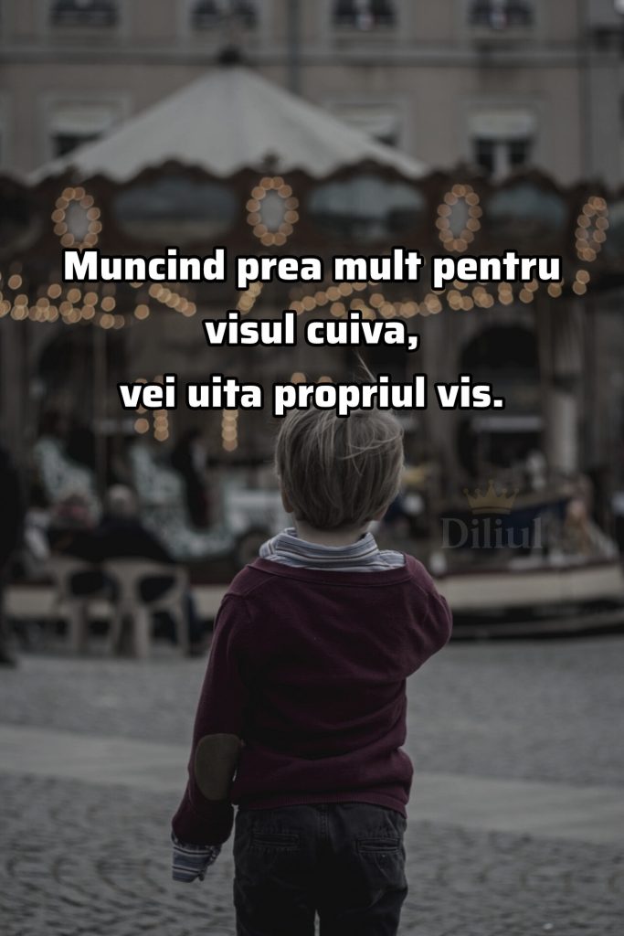 Home > Citate 📜 Muncind prea mult pentru visul cuiva, vei uita propriul vis. Vizitatori: 39 Categories:Citate 📜 Diliul Facebook Instagram PayPal Contact Form Share Share on Facebook Related Posts Citate 📜 Când mă uit în trecut… Singurul om de care-mi este milă acum, sunt eu. Citate 📜 Până la urmă toți vom deveni povești. Citate 📜 Cea mai mare greșeală a mea a fost să cred că oamenii țin la mine la fel cum țin eu la ei. Lasă un răspunsAdresa ta de email nu va fi publicată. Câmpurile obligatorii sunt marcate cu *Comentariu * Nume * Email * Site web Post comment Post anterior 😞 Adevărul dur despre relațiile din ziua de azi Post urmator Crede în tine însuți, fiecare zi este o nouă șansă să schimbi totul.