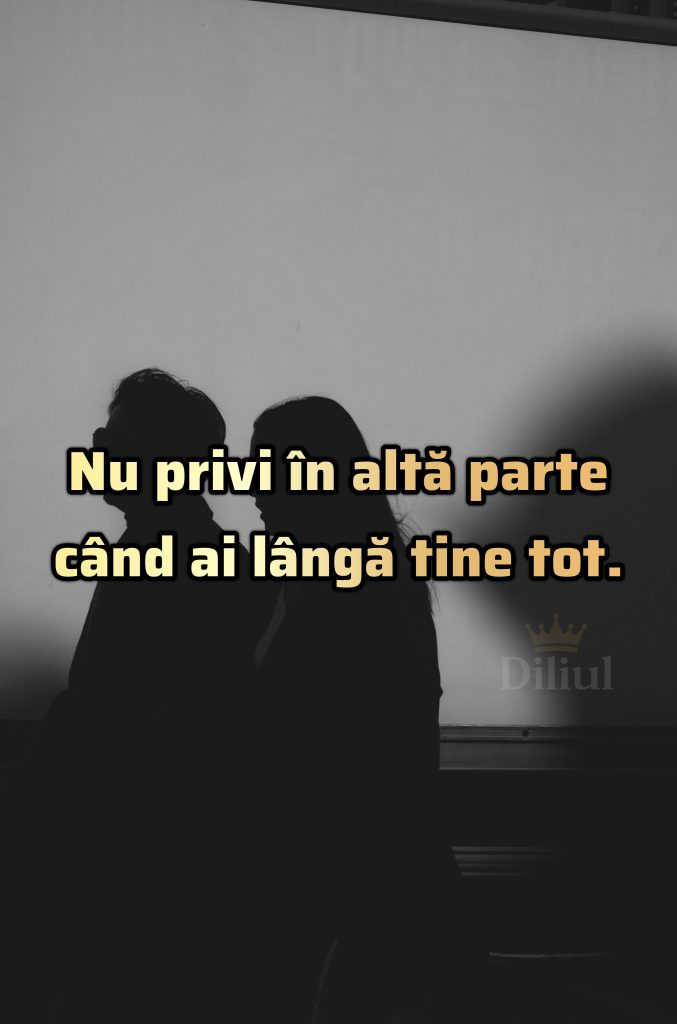 Home > Citate 📜 Nu privi în altă parte când ai lângă tine tot. Vizitatori: 14 Categories:Citate 📜 Diliul Facebook Instagram PayPal Contact Form Share Share on Facebook Related Posts Citate 📜 Fiecare avem o persoană la care când îi auzim vocea, trec toate problemele din viețile noastre. Citate 📜 Chiar și o zi proastă durează doar 24 ore. Citate 📜 În fiecare zi, alege să-ți trăiești cea mai bună viață, indiferent de circumstanțe. Lasă un răspunsAdresa ta de email nu va fi publicată. Câmpurile obligatorii sunt marcate cu *Comentariu * Nume * Email * Site web Post comment Post anterior Eu știu ce merit și nu negociez asta. Post urmator Iubește cu toată puterea și nu te atașa de niciun lucru.