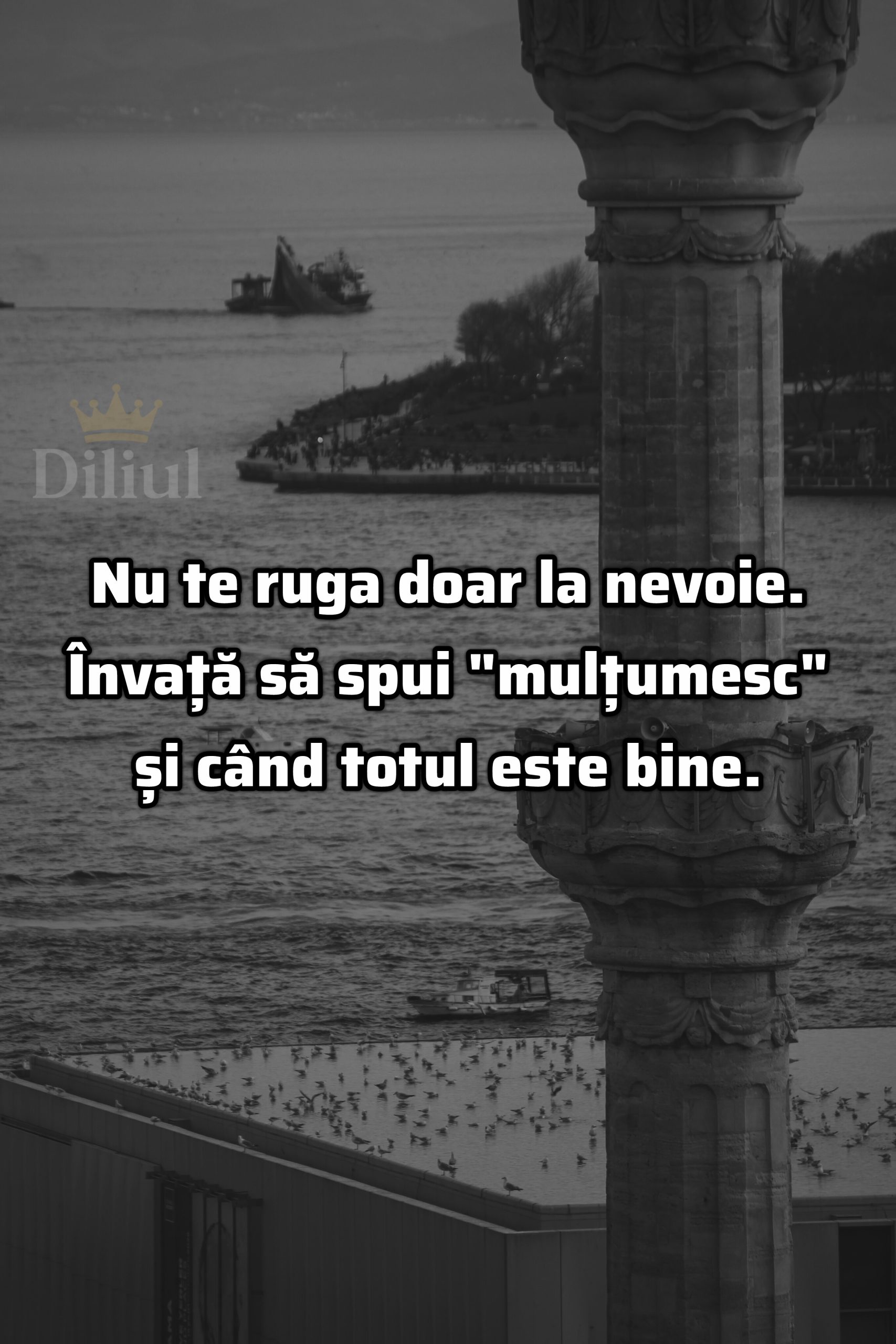 Home > Citate 📜 Nu te ruga doar la nevoie. Învață să spui „mulțumesc” și când totul este bine. Vizitatori: 16 Categories:Citate 📜 Diliul Facebook Instagram PayPal Contact Form Share Share on Facebook Related Posts Citate 📜 Cu tine nu vreau să încerc, cu tine vreau să reușesc și nu mă voi da bătut. Citate 📜 Pot împărți orice cu tine, dar nu te pot împărți niciodată cu nimeni. Citate 📜 Voi da totul pentru familie și pentru visurile mele. Lasă un răspunsAdresa ta de email nu va fi publicată. Câmpurile obligatorii sunt marcate cu *Comentariu * Nume * Email * Site web Post comment Post anterior Fii mândru de tine! Nimeni nu știe prin câte treci zilnic și totuși reușești să zâmbești. Post urmator Tu ești miracolul meu.