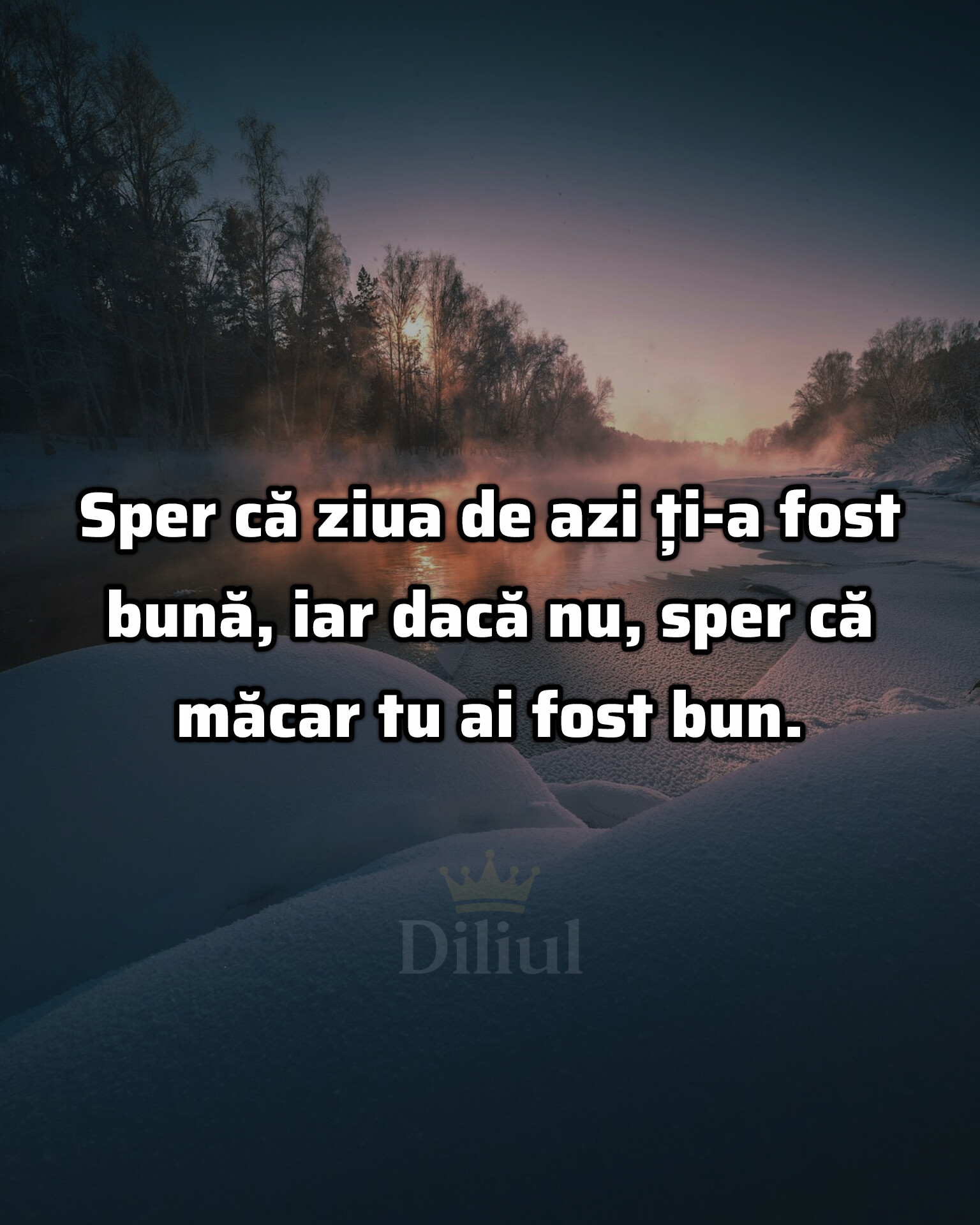 Home > Citate 📜 Sper că ziua de azi ți-a fost bună, iar dacă nu, sper că măcar tu ai fost bun. Vizitatori: 9 Categories:Citate 📜 Diliul Facebook Instagram PayPal Contact Form Share Share on Facebook Related Posts Citate 📜 Ne alegem prietenii, dar experiențele vieții ne arată care sunt cei reali. Citate 📜 Faptul că am fost singur atunci când aveam nevoie de ajutor, m-a schimbat pentru totdeauna. Citate 📜 Facem totul pentru a câștiga o inimă și prea puțin pentru a o păstra. Lasă un răspunsAdresa ta de email nu va fi publicată. Câmpurile obligatorii sunt marcate cu *Comentariu * Nume * Email * Site web Post comment Post anterior Cel care a suferit mult, nu va mai căuta dragoste, ci liniște. Post urmator Avantajul la o poză e că nu se schimbă niciodată, chit că oamenii din ea o fac.